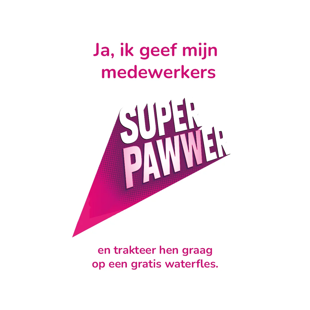 Met deze actie onderschrijven wij het belang van veerkracht op de werkvloer. Want regelmatig drinken tijdens je werk houd je veerkrachtig. Wij zeggen dan: even bijtanken met water geeft je SUPER PAWWER!