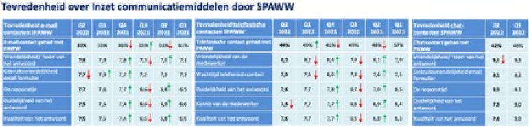 Het 2e kwartaal laat mooie cijfers zien. SPAWW wil de huidige lijn in de dienstverlening vasthouden en met als blijvende uitdaging een 8. Dat betekent alert blijven op de aandachtspunten en verder verbeteren. Alle partijen hebben uiteindelijk baat bij een goede dienstverlening. Vragen? Stuur gerust een bericht.